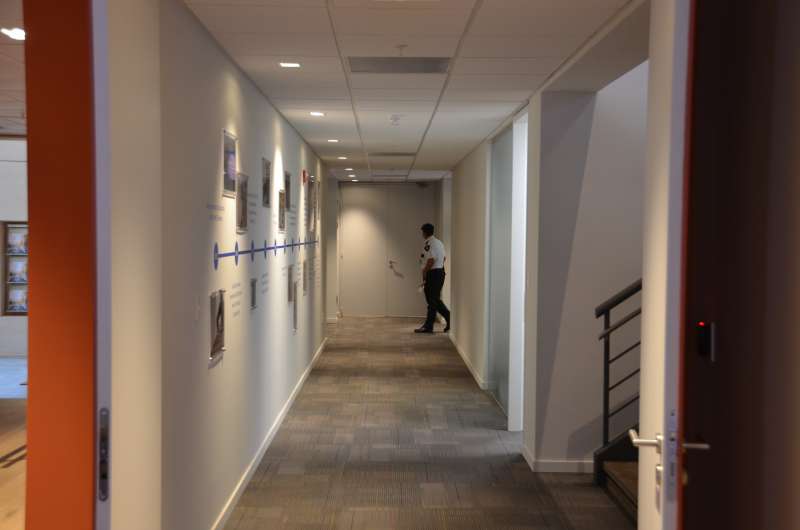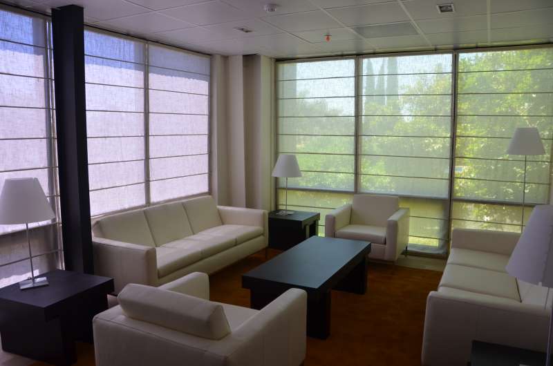 The office lobby looks into a full-height glazed atrium that opens out onto Mercosur Plaza through a dramatic curtain wall atrium that admits daylight to the reception area. The curtain wall allows the building to breathe with openable windows. Maximum use is made of daylight, and office floors are simple and generate a feeling of openness. Cellular offices and meeting rooms ring the perimeter of the building while group meeting spaces and open working spaces occupy the centre of the rectangular shape of the building.