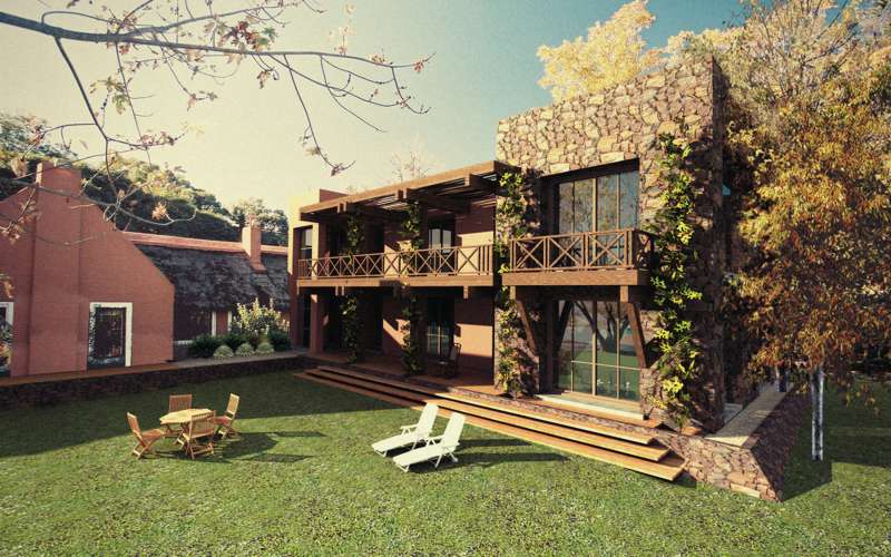 It combines the use of local materials with extremely contextual design. The project demonstrates how contemporary interventions can enhance the old by relying on sensitive juxtaposition rather than on competition. The use of a “quincho” roof as well as site stones and wood, gives the different buildings a particular shape surrounded by natural forests. The integration of the house and the bungalow to the site was a priority for the architects, in order to preserve the existing trees and their roots.